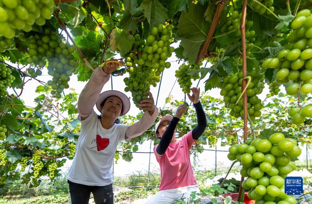 9月7日,村民在贵州省黔西市金碧镇新兰村葡萄种植基地采摘葡萄。