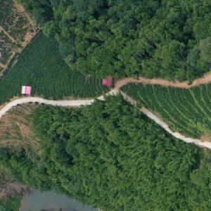 在梧州市苍梧县六堡镇塘坪村,茶农在茶园里采茶(无人机照片,9月6日摄)。