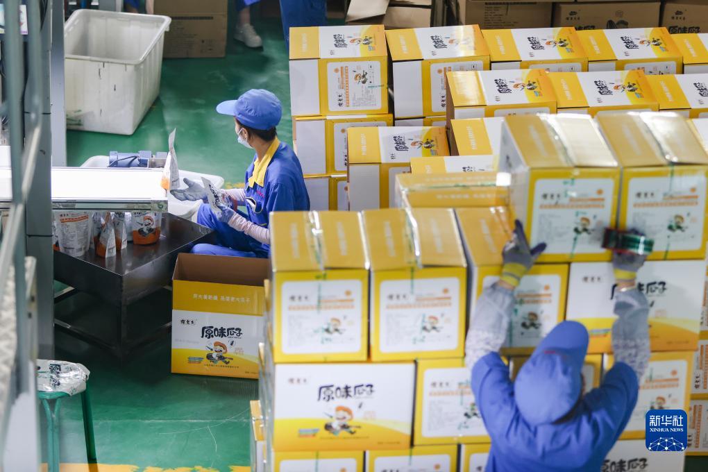 9月7日,在北屯市一家瓜子加工企业,工人在打包刚生产出的瓜子产品。