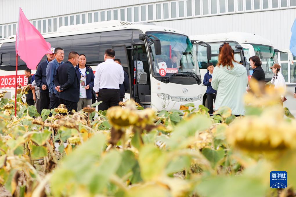 9月7日,客商在北屯市一家瓜子加工企业参观。
