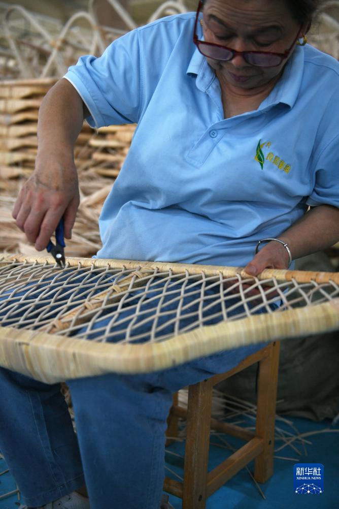 9月7日,在位于汉中市的陕西良顺匠心实业有限公司,工作人员在编织藤制品。