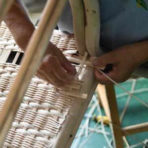9月7日,在位于汉中市的陕西良顺匠心实业有限公司,工作人员在检查藤椅部件。