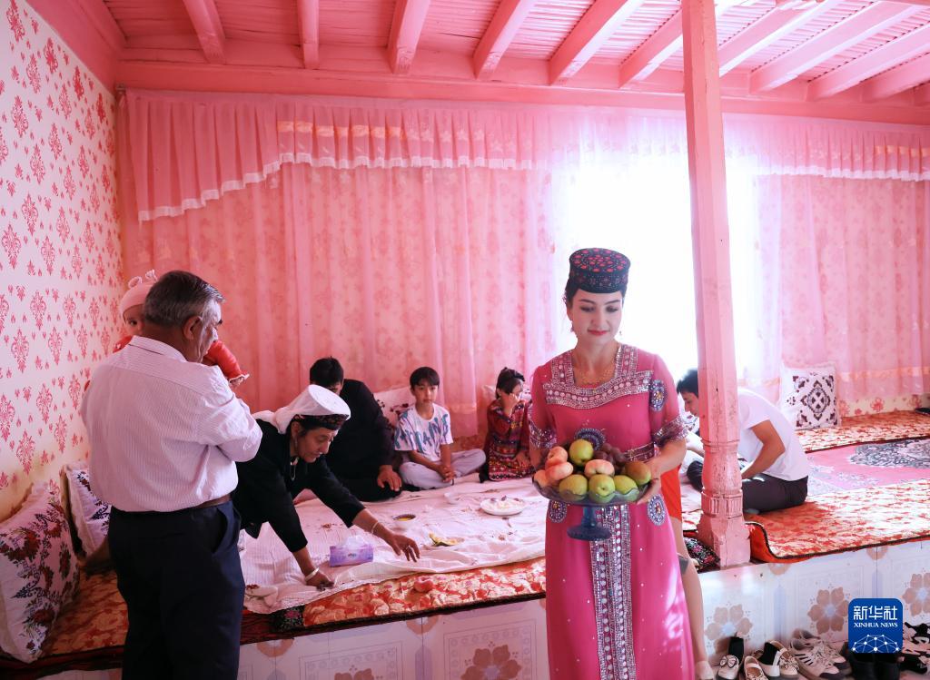 吃完晚饭,古丽巴努尔·库尔恰克和家人一起收拾餐具(9月4日摄)。