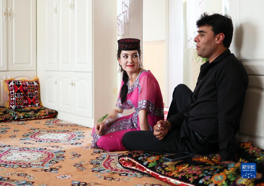 在位于县城的新家中,古丽巴努尔·库尔恰克深情地望向丈夫(9月4日摄)。