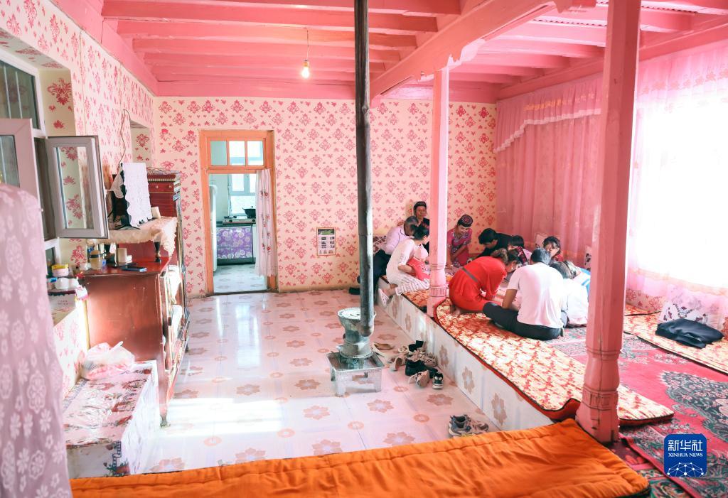 拜合提亚尔·居马汗一家人在家中吃晚饭(9月4日摄)。