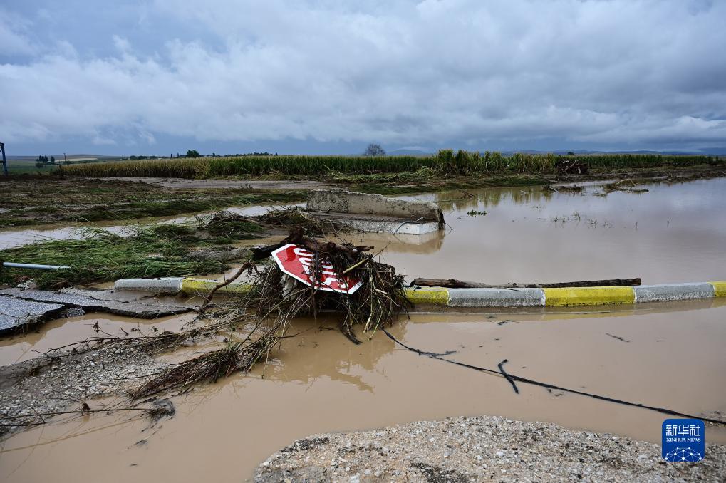 这是9月7日在希腊卡尔季察拍摄的洪水灾区。