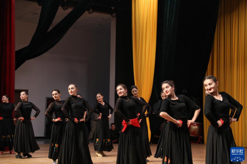 新疆塔县文工团舞蹈演员在排练节目《花儿为什么这样红》(9月4日摄)。新华社记者 程婷婷 摄