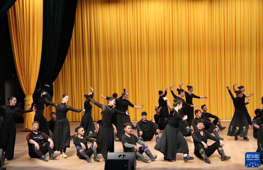 新疆塔县文工团舞蹈演员在排练鹰舞节目《传承》(9月4日摄)。新华社记者 程婷婷 摄