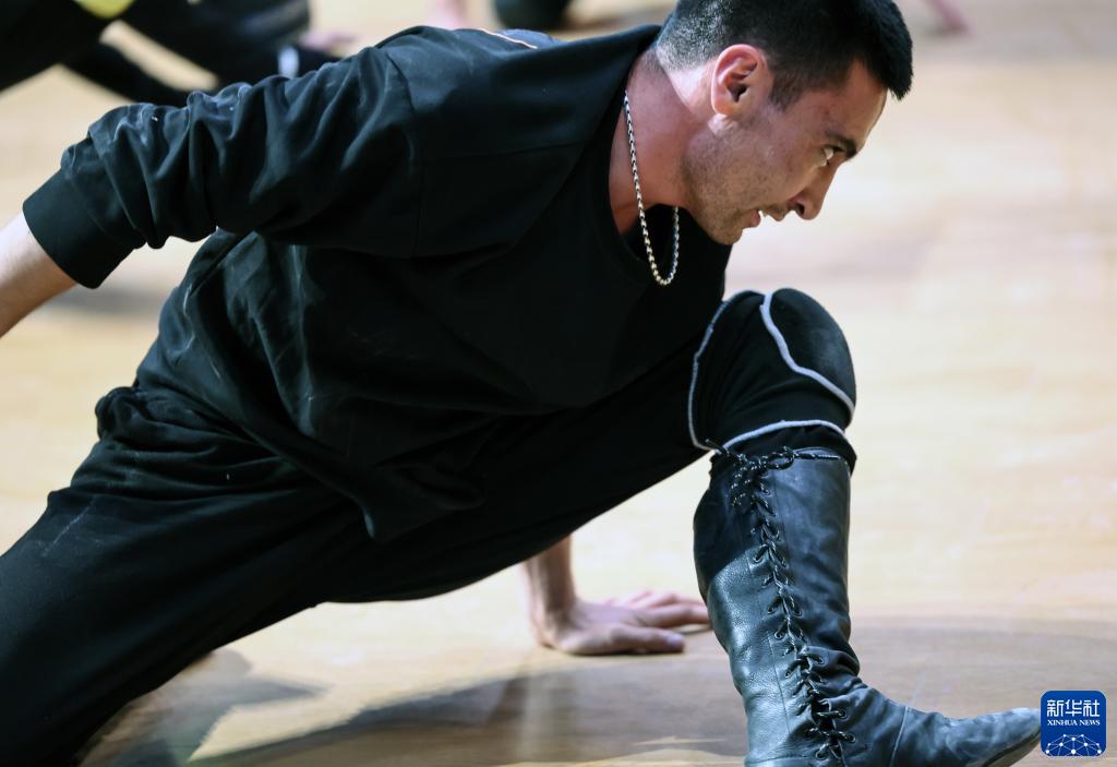 新疆塔县文工团演员巴拉提·买代沙在排练杂技节目(9月4日摄)。新华社记者 兰红光 摄