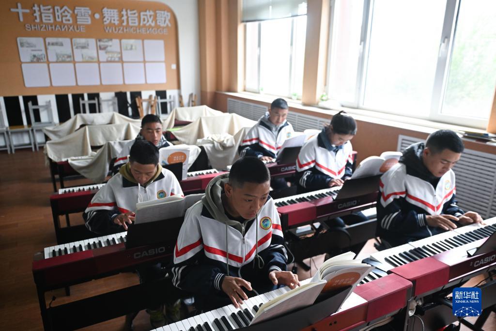 9月8日,在果洛藏族自治州职业技术学校,学前教育专业学生在上音乐课。
