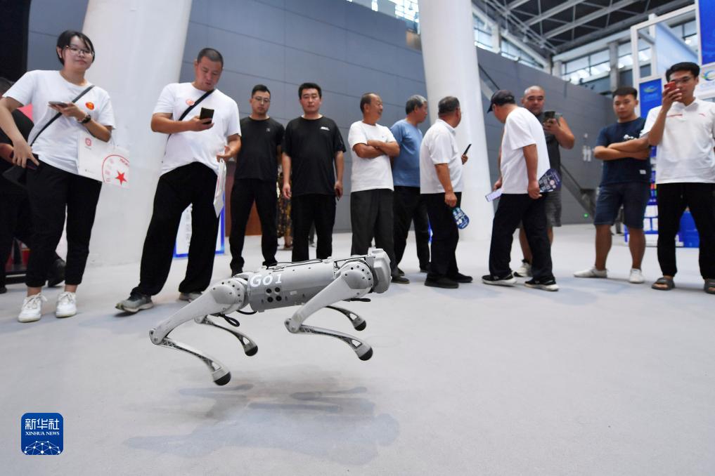 在2023中国国际数字经济博览会现场,各种机器人产品亮相展区,吸引观众驻足参观,感受智能机器人的科技魅力。