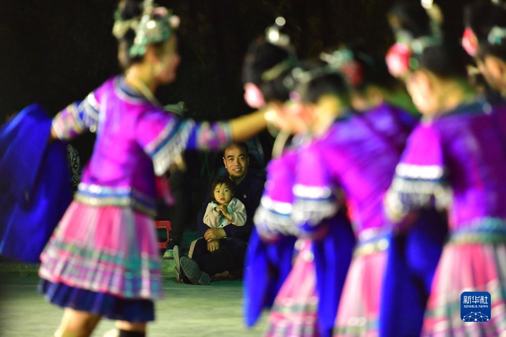 潘先锋带着学生观看文艺下乡演出(2021年4月29日摄)。