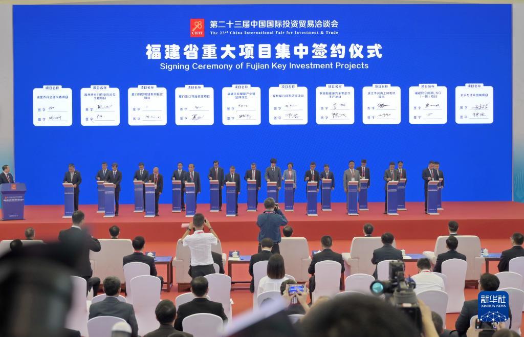 9月8日拍摄的第二十三届中国国际投资贸易洽谈会福建省重大项目集中签约仪式现场。