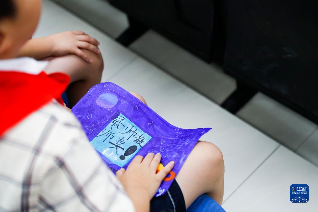这是9月8日拍摄的南宁市滨湖路小学的学生给老师绘制的奖状。