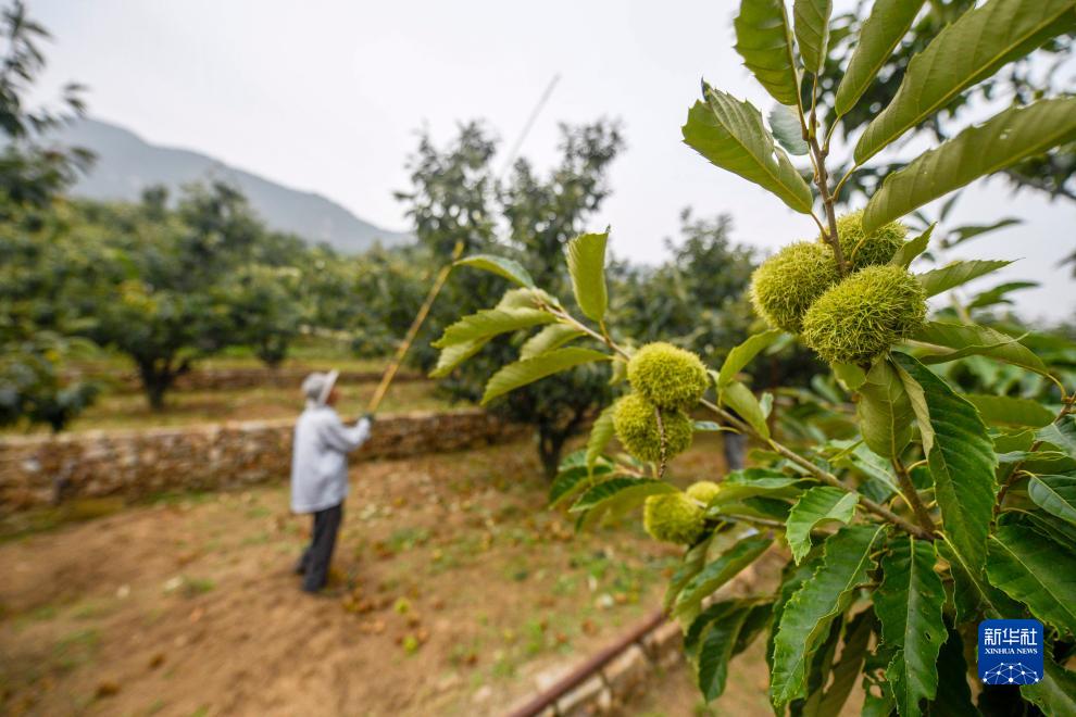 9月8日,在宽城县碾子峪镇艾峪口村,农民在收获板栗。