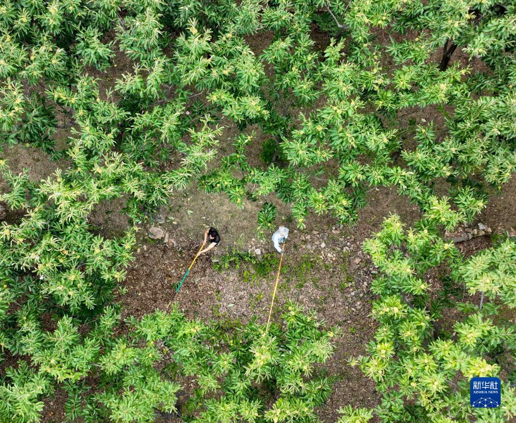 9月8日,在宽城县碾子峪镇艾峪口村,农民在收获板栗(无人机照片)。