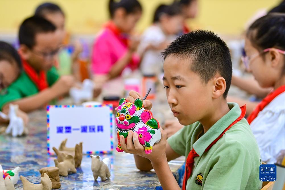 当日,内蒙古鄂尔多斯市康巴什区第八小学举办“赛技艺 美童年”主题美术作品创意比赛,学生创作景泰蓝、沥粉画、泥塑等美术作品,展现艺术巧思与创意。近年来,康巴什区通过“一校一品”特色课堂建设,将美术、音乐、戏曲等纳入课后服务内容,让优秀传统文化浸润童心,助力学生健康快乐成长。
