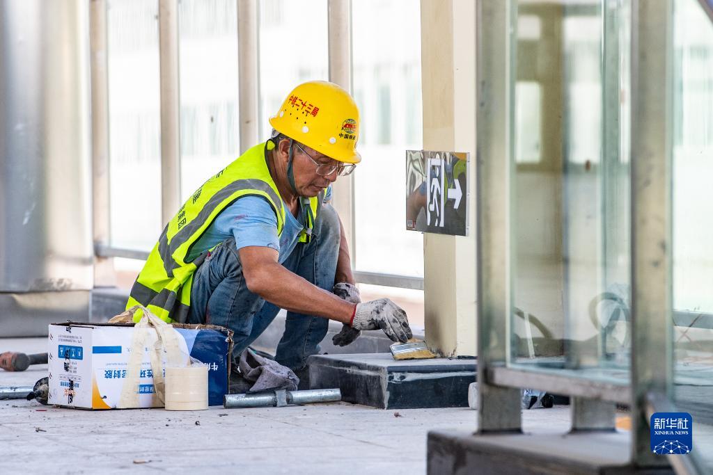 9月8日,在重庆轨道交通18号线金鳌山站,工作人员在进行施工作业。