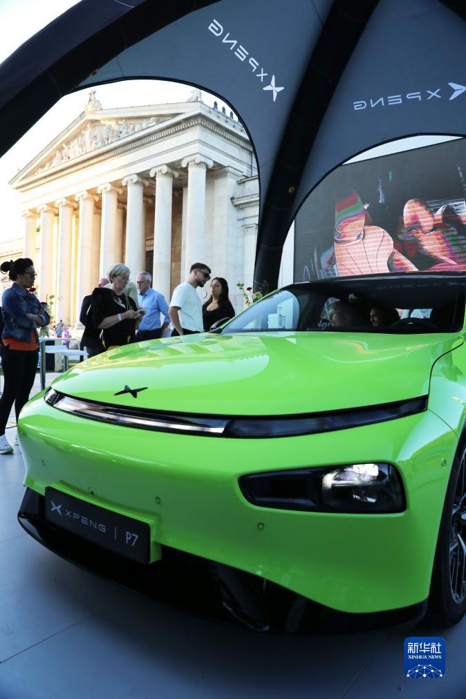 9月5日,人们在德国慕尼黑国际车展城市公共展示区的小鹏展区参观。