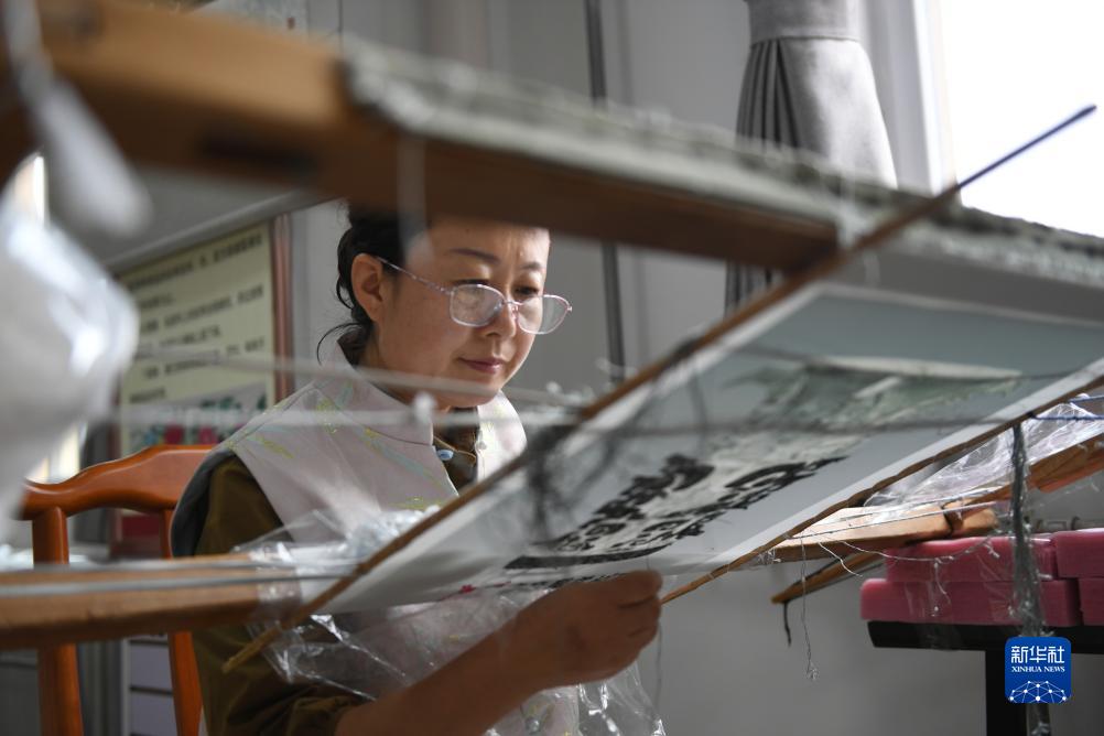 9月8日,在宝鸡西秦刺绣文化产业园,千阳绣娘在刺绣。陕西千阳县是国家级非物质文化遗产“西秦刺绣”的重要发祥地和传承地。近年来,千阳县将西秦刺绣作为助农增收的重要产业,推动非遗项目产业化发展,助力乡村振兴。
