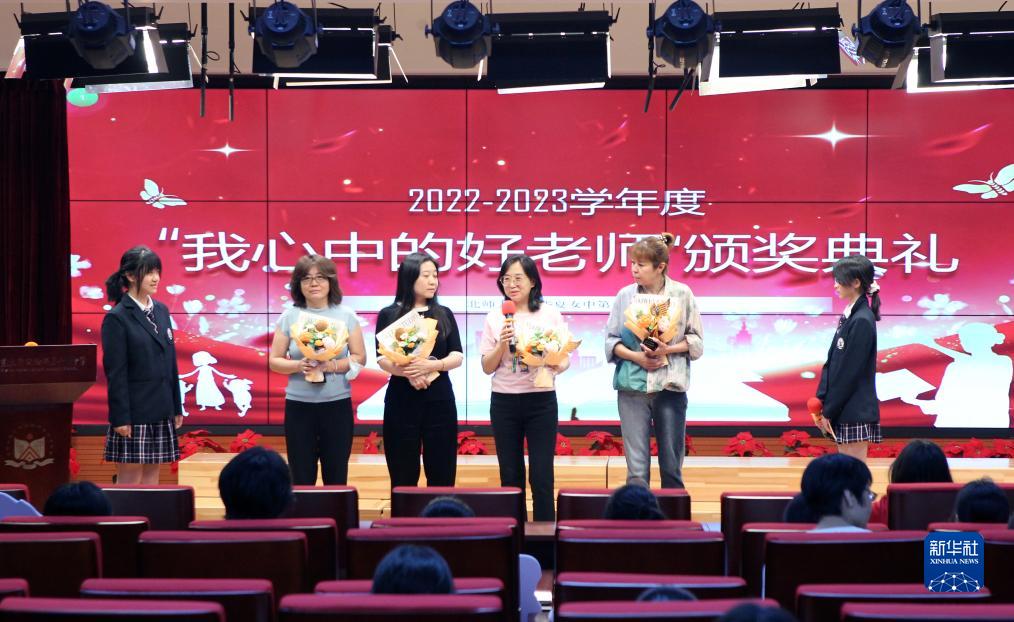 教师节即将来临之际,北京师范大学实验华夏女子中学举办迎接教师节主题活动,师生共聚一堂,弘扬尊师重教的传统。新华社记者 侯俊 摄