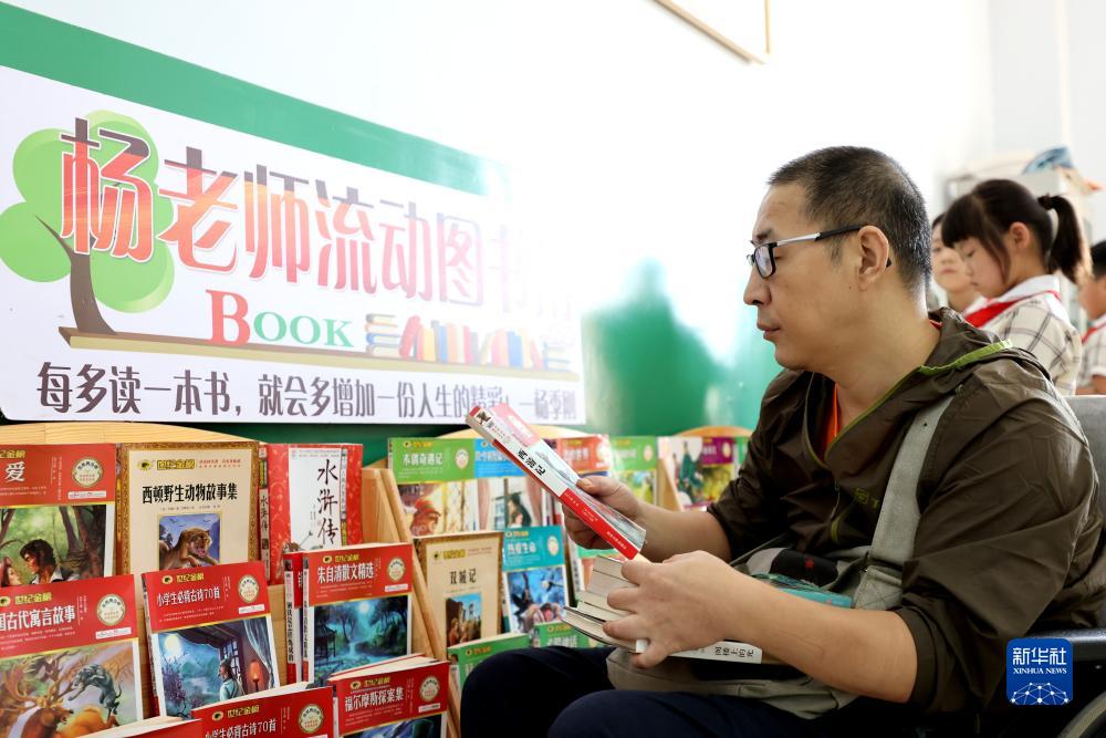 今年秋季开学,除了四年级英语、美术课外,杨季刚还负责一、二年级书法和阅读课教学,参与学校节假日值班等工作。他用积攒的奖金和慰问金购买了学生们喜爱的读物,建立“杨老师流动图书角”,设立读书奖励基金,激励学生养成爱读书、读好书的习惯。新华社发(孙中喆摄)