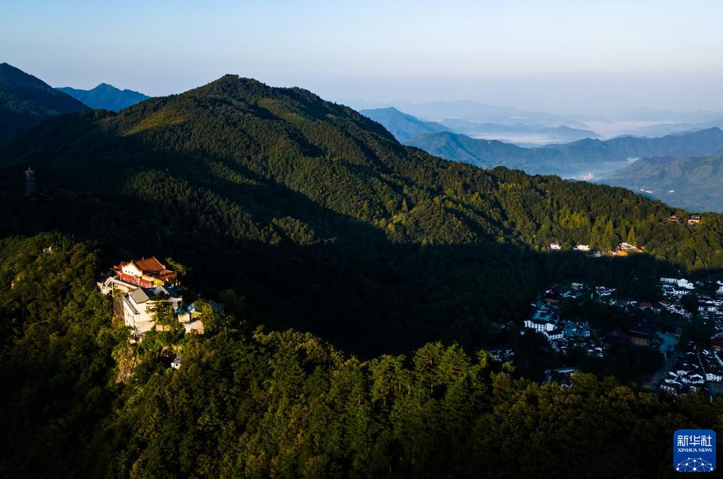 9月9日拍摄的九华山清晨日出时分景色(无人机照片)。