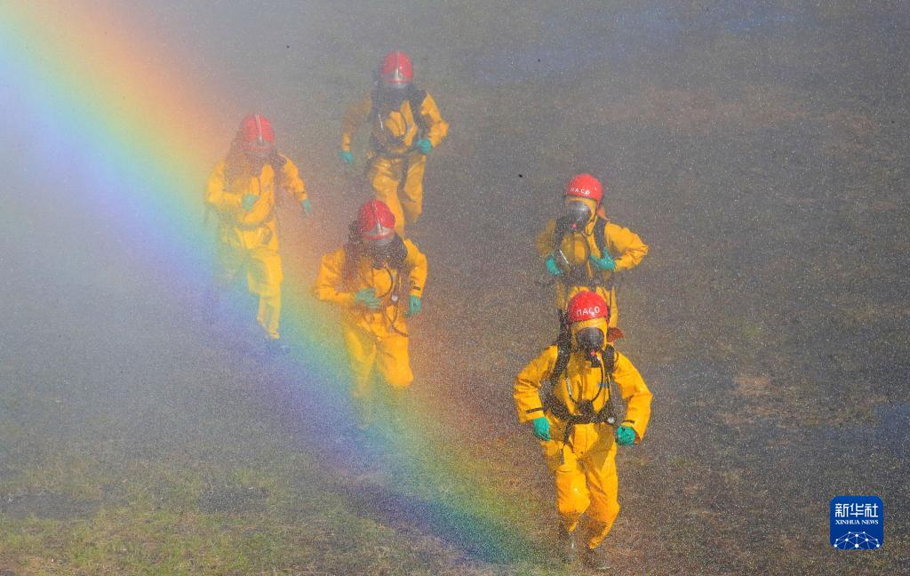 9月5日,演习人员在白俄罗斯明斯克州进行消防救援演习。