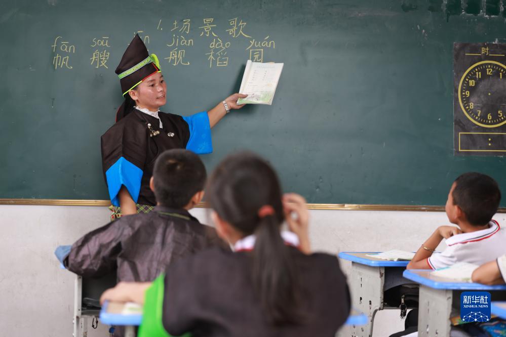 柳吉小学教师王章艳在给学生上语文课(9月7日摄)。