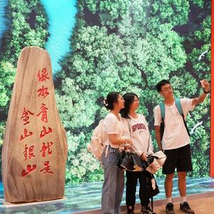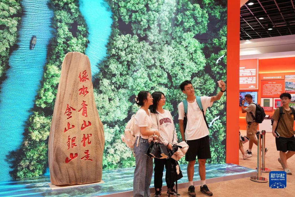 9月9日,参观者在大道之行——“八八战略”实施20周年大型主题展览现场留影。