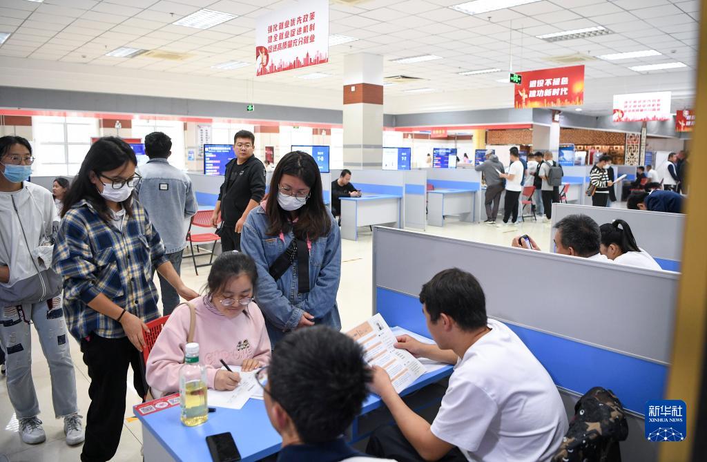 9月9日,求职者在招聘会现场登记意向岗位信息。
