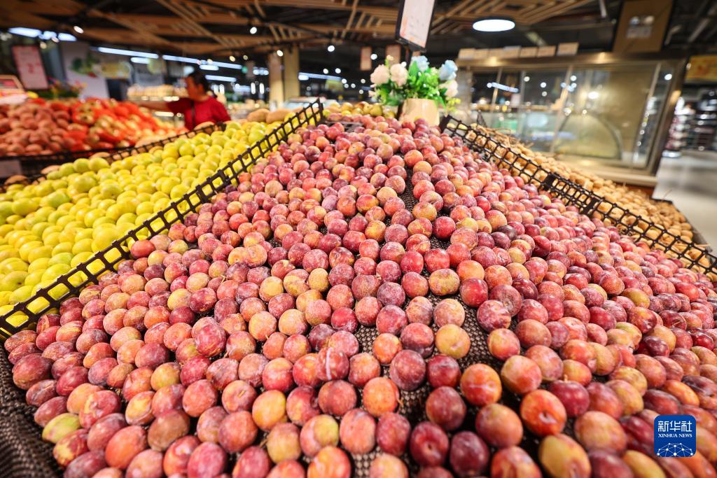9月9日,消费者在贵州省丹寨县一家超市选购水果。