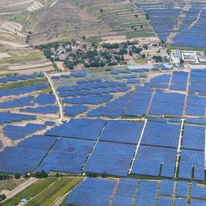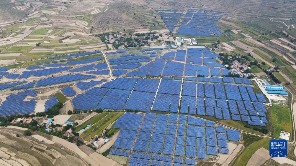 这是在通渭县榜罗镇四新村拍摄的光伏电站(9月9日摄,无人机照片)。