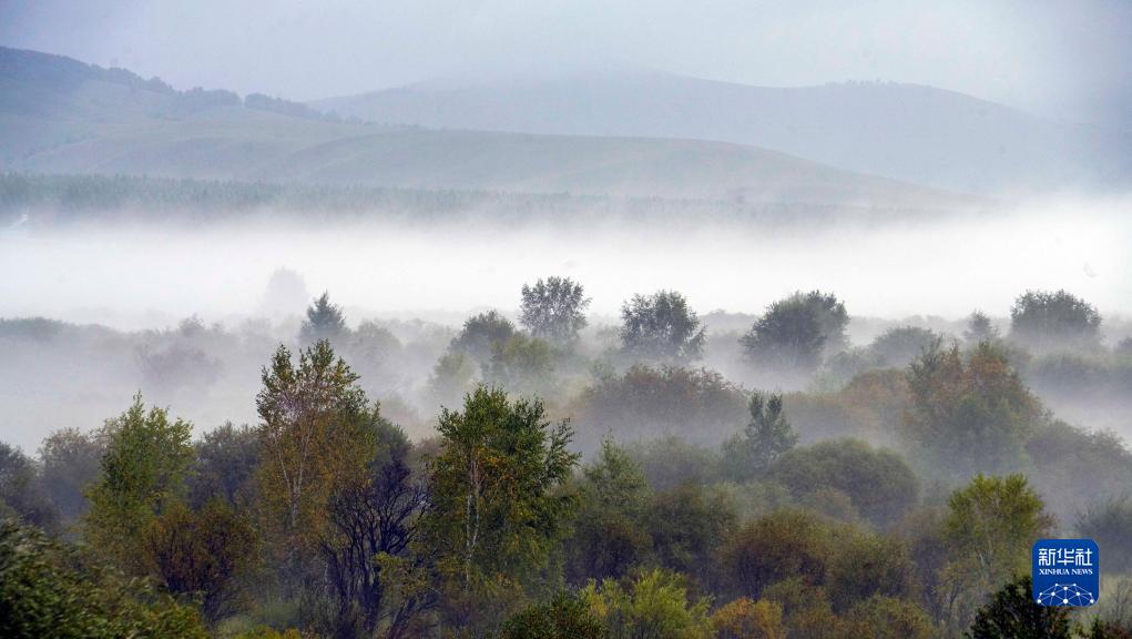当日,位于河北省承德市的赛罕坝国家森林公园雾气缭绕,秋景迷人。