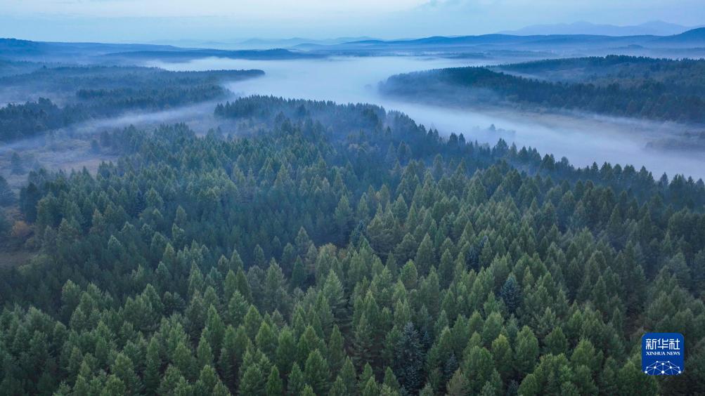 9月9日清晨拍摄的塞罕坝晨雾(无人机照片)。