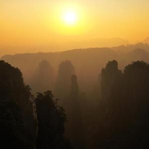 9月9日在湖南张家界国家森林公园黄石寨拍摄的日出景色。