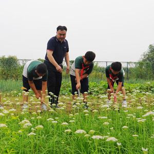 9月9日,在山东省乐陵市朱集中心小学劳动实践基地,老师指导学生上劳动实践课。