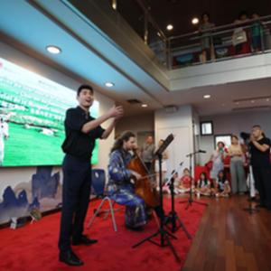 9月9日,在法国巴黎中国文化中心,演员为观众表演歌曲《鸿雁》。
