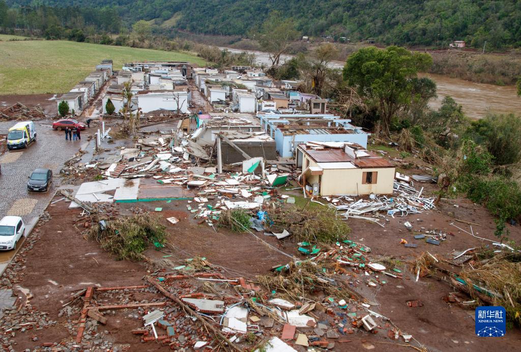 这是9月9日在巴西南里奥格兰德州穆孙市拍摄的遭损毁的建筑。