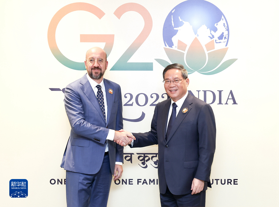 当地时间9月10日上午,国务院总理李强在新德里出席二十国集团领导人峰会期间会见欧洲理事会主席米歇尔。