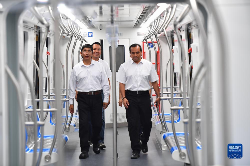 墨西哥来宾在中国中车出口墨西哥城轻轨列车首列车内参观(9月9日摄)。