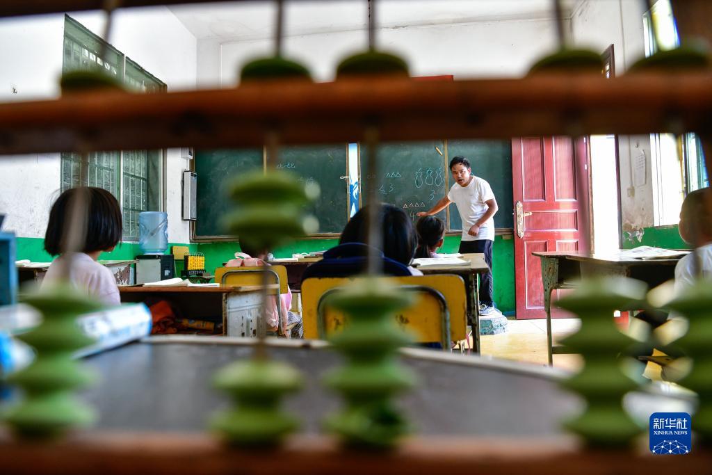 陆成文在给一年级学生上数学课(9月6日摄)。