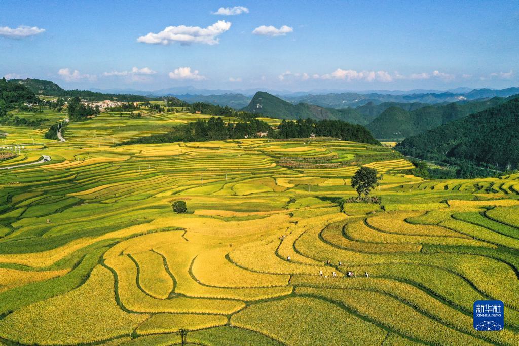 陆成文带领学生在学校后山的腊利梯田写生(9月6日摄,无人机照片)。