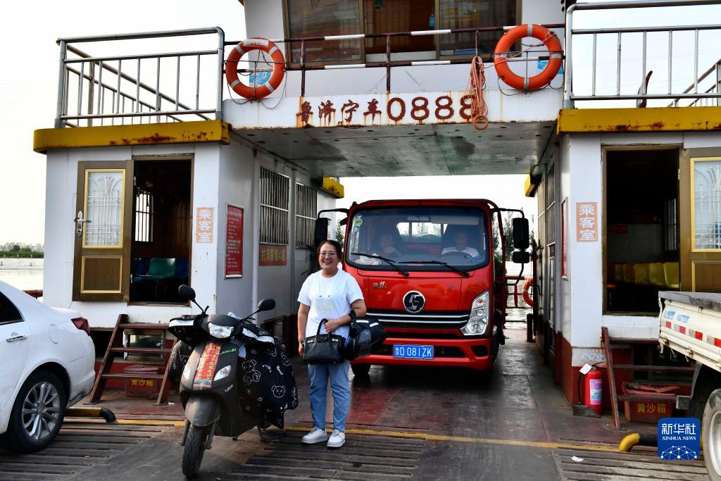 9月5日,微山县高楼乡渭河小学老师闫治羽放学后乘轮渡回家。