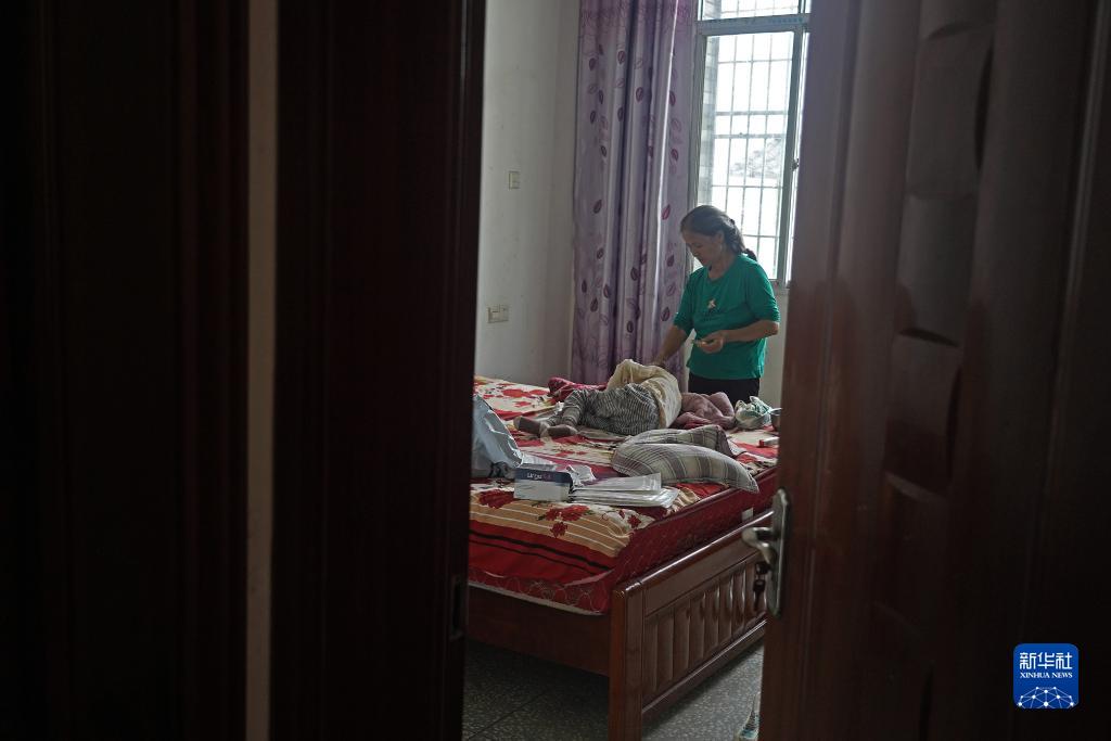 奶奶在家中用药膏给小泽涂抹伤口(9月4日摄)。