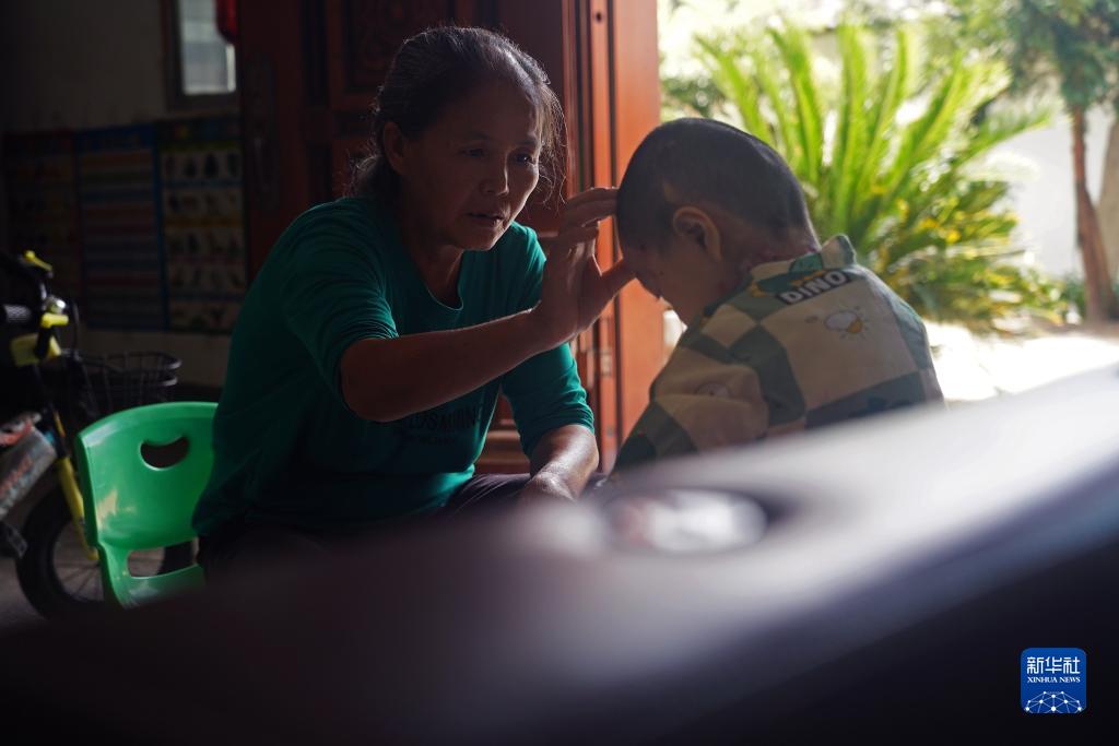 奶奶在家中查看小泽的伤口(9月4日摄)。