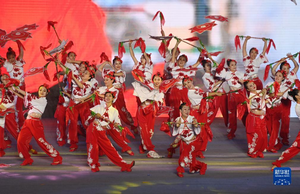 9月10日,参加展演活动的广场舞团队在表演。