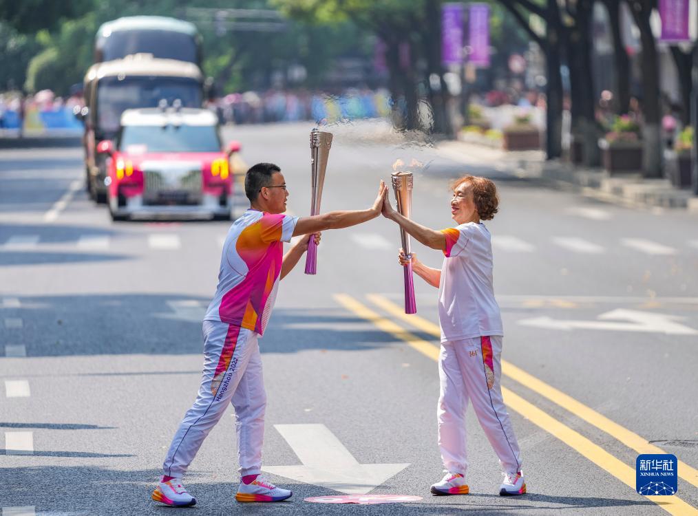 当日,杭州亚运会火炬在浙江省绍兴传递。
