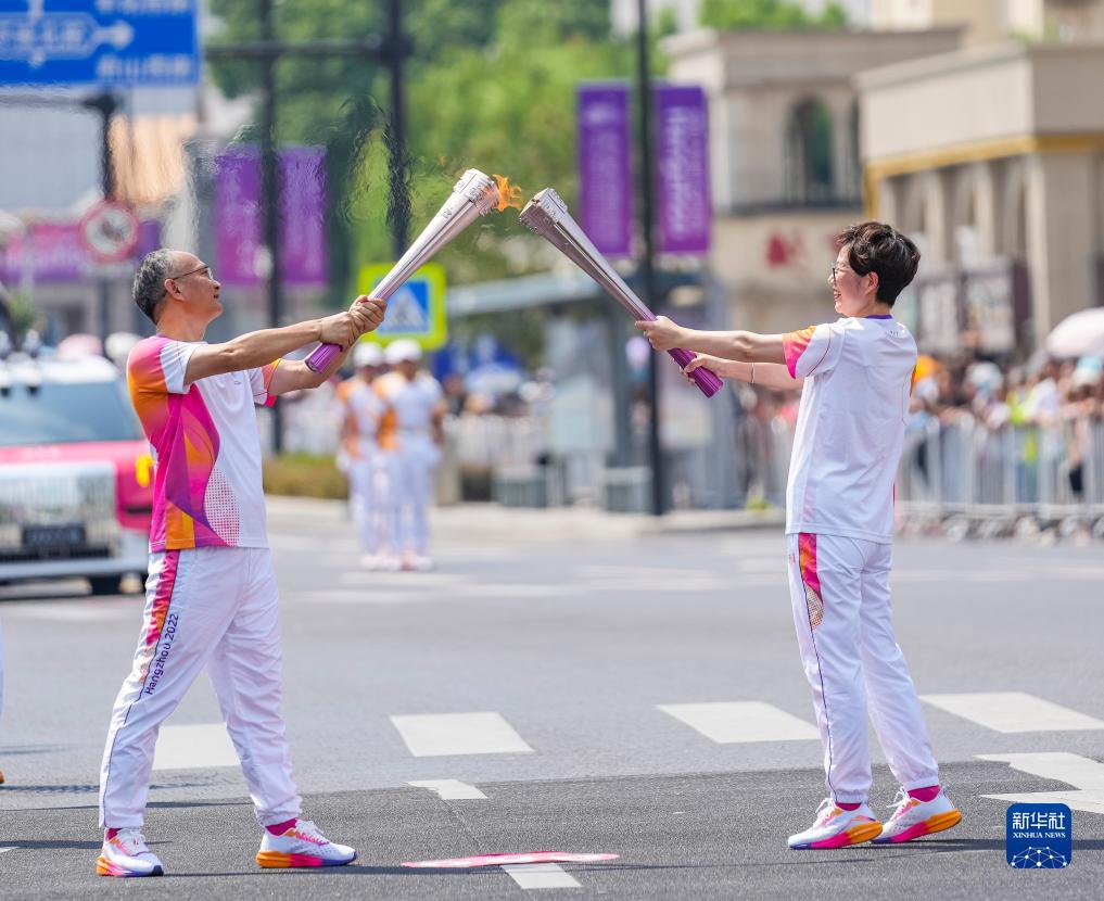 当日,杭州亚运会火炬在浙江省绍兴传递。