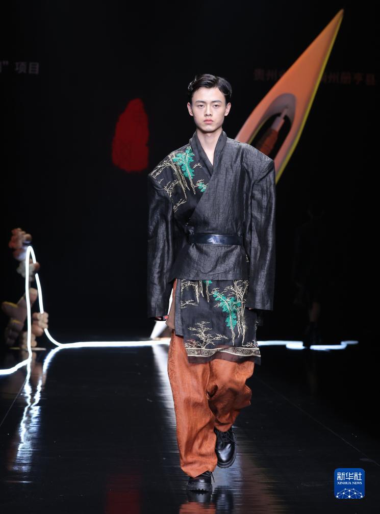 当日,主题为“文脉承续·香云纱·锦·绣·中华”的黄刚时装发布会在北京举行的中国国际时装周(2024春夏系列)上举行。